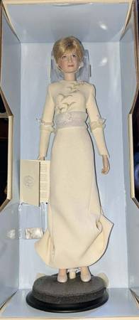Franklin Mint Princess Diana Dolls. Came from a smoker's house so I am sure they need to be properly cleaned. All with their original boxes which are not pristine but are still in great condition. I have no idea if there is supposed to be certificates or anything, owner had a basement flood so that may all be lost. I am still going through things so I may find them yet. Also have some plates. Some still have their stands. Still in their styrofoam. They have been in storage so their containers look rough but all are in perfect condition.